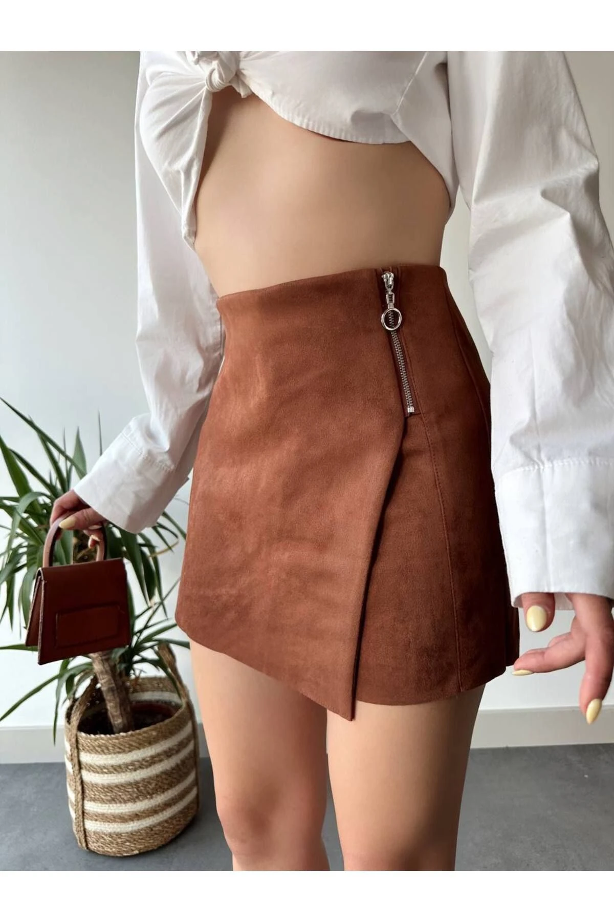 - Fermuar detayı ile pratik kullanım sunan bu şort etek, günlük kombinlerinizde kolayca yer bulur.; - Fermuar kapama şekli sayesinde rahat bir giyim deneyimi sağlar; yarım pat tasarımı ise modern bir görünüm kazandırır.; - Süet dokusuyla hem şıklığı hem de konforu bir arada sunan bu ürün, her mevsim tercih edebileceğiniz ideal bir seçenektir.; - Ortalama kalınlığa sahip olan bu şort etek, mevsimsel geçişlerde ideal bir tercihtir.; - Sürdürülebilirlik detayına dikkat edilmemiş olmasına rağmen, dayanıklı malzemelerden üretilmiştir.; - Cepsiz tasarımının yanında astarsız yapısıyla hafif ve ferah bir his verirken, iç göstermez özelliğiyle rahatlıkla kullanılabilir.; - Tüm yaş gruplarına hitap eden bu ürün, genç ruhu yansıtan cool & comfort tarzıyla dikkat çeker.; - Günlük ortamlarda rahatça tercih edebileceğiniz bu şort etek, zamansız parçalar arasında yerini alır.; - Viskoz karışımlı kumaşı sayesinde yumuşak dokunuşuyla teninizde hoş bir his bırakırken, polyester ve pamuk gibi diğ Devamını Göster