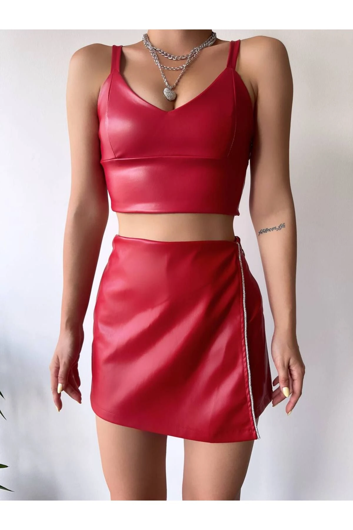 - Şık ve modern tasarımıyla dikkat çeken taş detaylı şort etek, her gardırobun vazgeçilmezi olacak.; - Cepsiz yapısı ile pratik kullanım sunan bu parça, günlük kombinlerinizde kolayca yer bulur.; - Orta kalınlığı sayesinde mevsim geçişlerinde ideal bir konfor sağlar.; - Düz kesimi ve taş aksesuar detaylarıyla dikkat çekici bir görünüm kazandırır.; - Fashion Forward tarzıyla genç ve dinamik bir stil vurgusu yapar.; - Şort etek silueti, hem rahatlığı hem de şıklığı bir arada sunar.; - Sürdürülebilirlik detayları içermeyen yapısıyla çevre dostu bir tercih olmayabilir.; - Kemersiz tasarımı ile belinizi saran yüksek bel kesimi sayesinde zarif bir duruş sergiler.; - %100 poliüretan materyali dayanıklılığı artırırken, suni deri dokusuyla sofistike bir görünüm sağlar.; - Maksimum 30 °C'de yıkama talimatına uyarak uzun ömürlü kullanım elde edebilirsiniz.; - Tüm yaş gruplarına hitap eden geniş kullanım yelpazesi sunar.; - Tüm sezonlarda tercih edebileceğiniz çok yönlülükte bir parça olarak gardı Devamını Göster